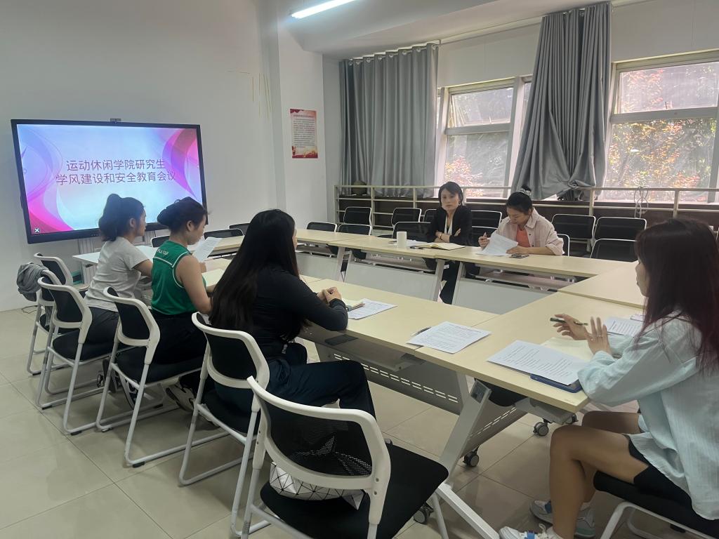 近日,为进一步加强安全管理与学风建设工作,营造平安和谐、积极向上的学习氛围,提高我院研究生培养质量,运动休闲学院召开了学风建设与安全教育工作会议暨学生干部工作例会。运动休闲学院副院长胡婕婷、研究生辅导员袁刘舒仪、各年级班委参加。