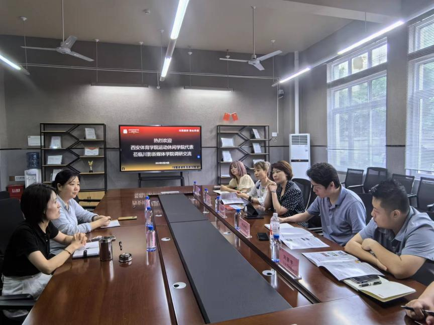 第二站访问了四川电影电视学院新媒体学院,新媒体学院院长段晓冉和运动休闲学院副院长胡婕婷分别就自身发展进行了交流。郭春玲书记就毕业生就业前景、专业发展等问题进行了深度探讨,此外,双方在科研和学科建设等方面也达成了初步的合作意向。