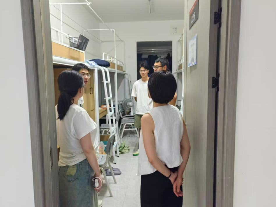为走入学生生活第一线,收集学生第一手生活体验,晚7时,胡婕婷副院长带领辅导员走进各个寝室,对学生入住后的体会和需求进行了认真了解。许多学生们都说,搬入鄠邑校区,住宿条件有了很大改善,因此,一定要珍惜现在的条件,抓紧时间,在学业上再上一个台阶。