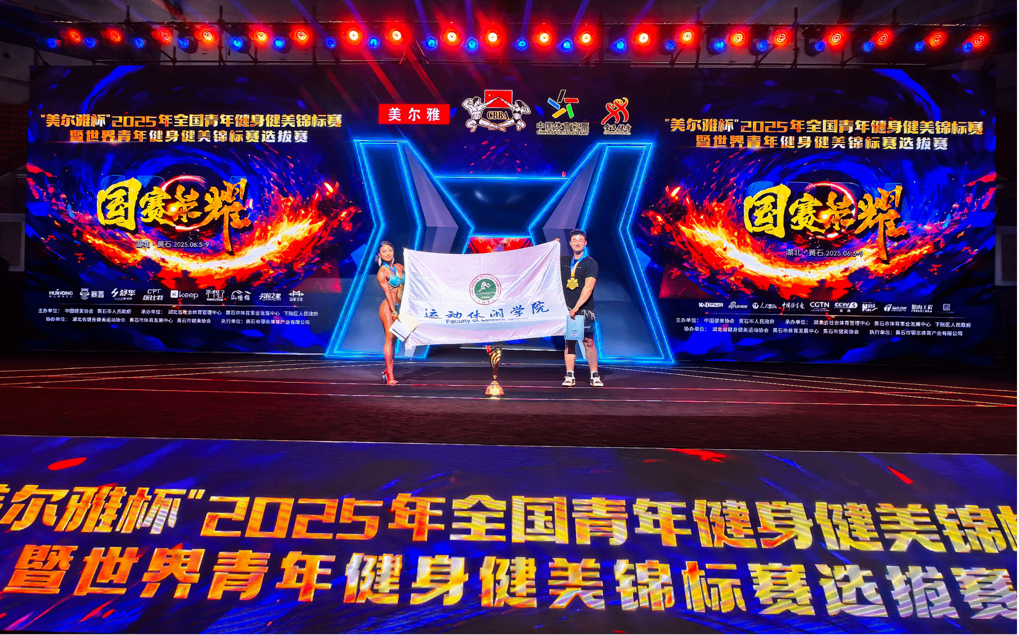 今日(2025年6月8日),从湖北黄石传来振奋人心的捷报!在备受瞩目的2025年全国青年健身健美锦标赛暨世界青年健身健美锦标赛选拔赛上,365官网2022级运动休闲学院健身健美专项学生周熠以绝对实力闪耀赛场,一举夺得大学生组女子形体身高163(含)以下组冠军,并在此基础上一路高歌猛进,最终加冕大学生组女子形体项目全场总冠军、青年组女子形体全场总冠军、荣膺最佳形体奖,闪耀全场!