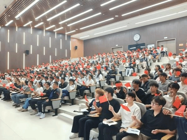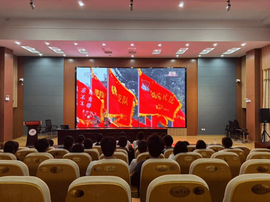 上午8时40分,鄠邑校区教学楼3楼报告厅内座无虚席,200 名无课学生身着整齐服装,在辅导员的带领下有序就座。直播开始前,学院负责人简要回顾抗战历史,叮嘱学子们牢记体育人 “为国争光、为民服务” 的初心。随着大会正式开启,当国歌奏响、受阅方队迈着铿锵步伐通过屏幕时,现场学子自发起立鼓掌,眼神中满是崇敬与自豪;听到关于 “以史为鉴、开创未来” 的重要论述时,大家纷纷提笔记录,深刻领会历史赋予当代青年的责任。