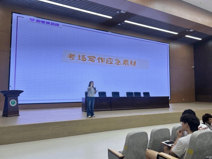 随后,舒悦聚焦考试的三大核心模块——《综合素质》、《教育知识与能力》及学科专业知识,逐一给出了冲刺策略。在《综合素质》部分,舒悦提炼出职业理念、教育法律法规等“必拿分”章节,提供“关键词定位法”、“案例模板记忆法”等实用技巧;针对《教育知识与能力》的高频简答题、辨析题,她梳理出核心考点,并现场示范如何用“理论+实例”的方式组织答题语言。考虑到体育专业的实践属性,讲座特别设置“专业题型突破”环节。让学生既能掌握理论要点,又能贴合专业实际。