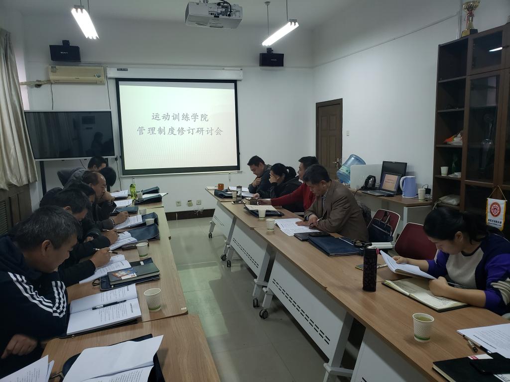 为认真学习贯彻党的十九届四中全会精神,全面落实《英国365上市公司官网全面推进依法治校工作的实施意见》的文件精神,围绕学校第六次党代会决策部署,加快推进运动训练学院治理体系和治理能力高效化、制度化、规范化、精细化、科学化进程,进一步加强运动训练学院制度建设和创新,完善内部治理,全面推进依法治校,结合学院发展实际,2019年12月26日下午14:30分,在运动训练学院6楼会议室召开了运行训练学院管理制度修订研讨会。运动训练学院党政领导、教授、教研室主任、副主任、书记、年级办主任、办公室工作人员参加了此次会议。会议由运动训练学院院长武洛生主持。