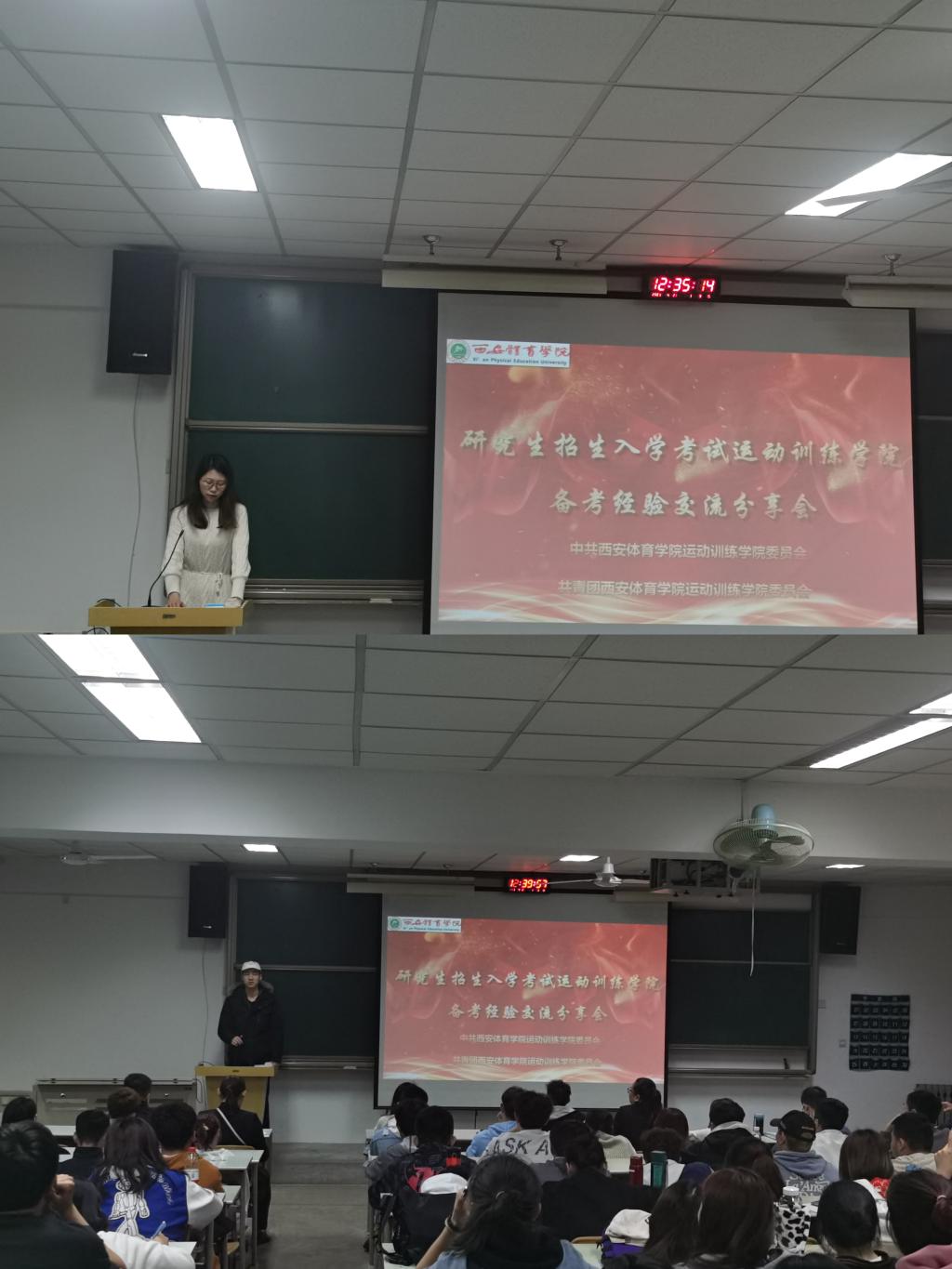 谢宜轩博士作为运动训练学教研室党支部书记一直为学院本科生带运动训练学专业课,为历届学生成功考研立下汗马功劳!本次分享会谢老师通过风趣幽默的语言快、狠、准地瞄准中每一位预备考研学生的具体情况,做了充分分析,对大家提出了备考的方法及考研学习时间的分配等具体要求,同时叮嘱备考学生借鉴学长们考研经验,根据自己自身学习水平,掌握科学的复习方法,及时调整心态,为了自己的目标与理想拼搏奋斗。