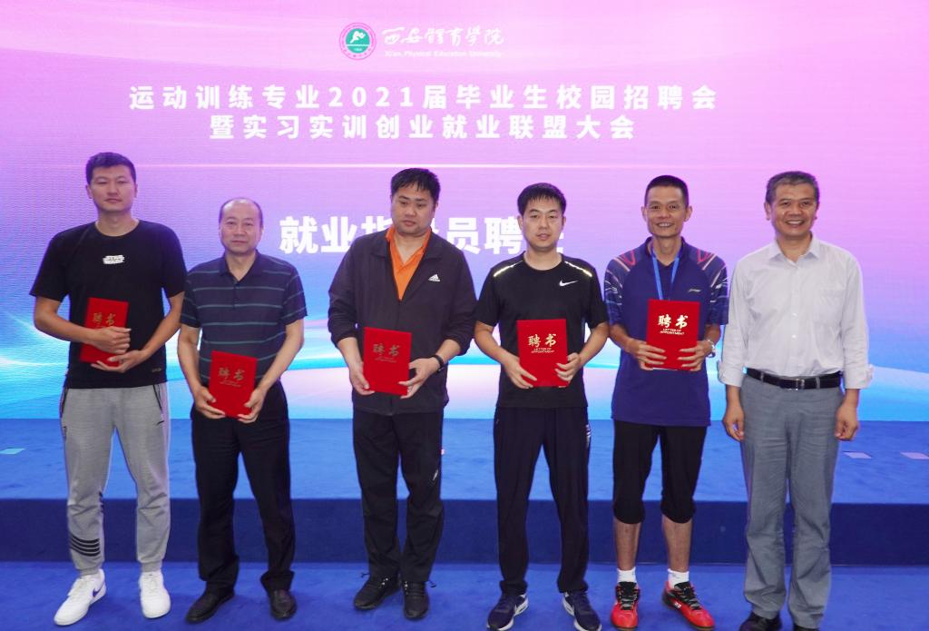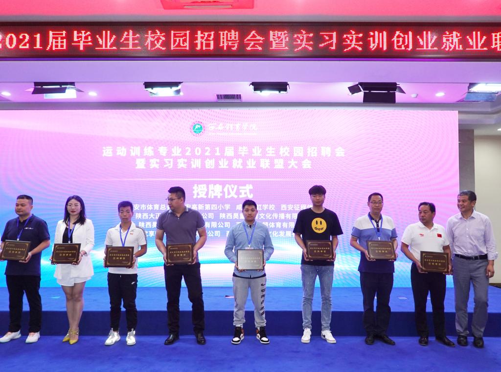 2021届毕业生校园招聘会暨实习实训创业就业联盟大会大会上,英国365上市公司官网运动训练学院与22家企事业单位签订了实习实训创业就业战略合作协议,并为合作单位进行授牌。同时,为14名专业教师颁发了聘任证书,加强实习实训创业就业的实际效果。