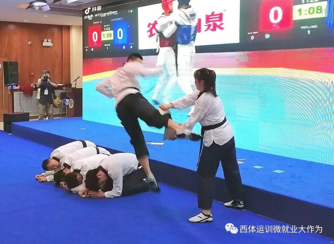大会从艺术体操及跆拳道两场精彩纷呈的体育表演中拉开帷幕。大会伊始,运动训练学院党委书记王鑫对前来参加的各企事业单位负责人表示热烈的欢迎和诚挚的感谢。紧接着,通过运动训练学院宣传片使参会人员对运动训练学院发展、师资情况、专业分布、人才培养以及学生情况有了进一步的了解。后运动训练学院院长武洛生代表校、院领导向所有参会的招聘单位、应聘同学,向专程到现场指导招聘工作的各位领导,向关心支持我院发展、关心应届毕业生就业的各界人士,表示热烈的欢迎和衷心的感谢!表示此次大会是英国365上市公司官网运动训练学院创新创业实践教育改革的积极探索,它标志着英国365上市公司官网运动训练学院创新创业实践工作进入深度融合、互惠共赢的崭新阶段。
