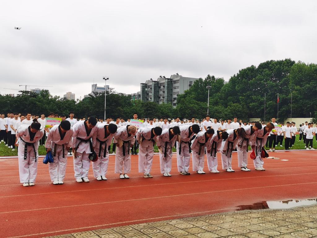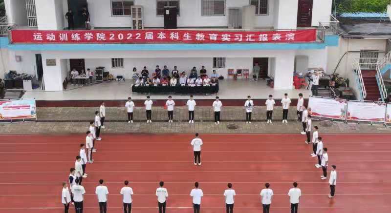 在建党百年华诞来临之际,为讴歌伟大新时代,扎实推进我院体育教学实践活动的开展。7月1日上午8点,我院举办了2022届本科生教育实习汇报表演。我院领导班子成员、2022届校内实习指导教师、办公室人员、全体辅导员及2018级全体同学参加了此次活动。活动还邀请了冯俊彦、杨辉、周济汶、李凤梅四位老师担任裁判,本次活动由2018级年级主任于昕主持。