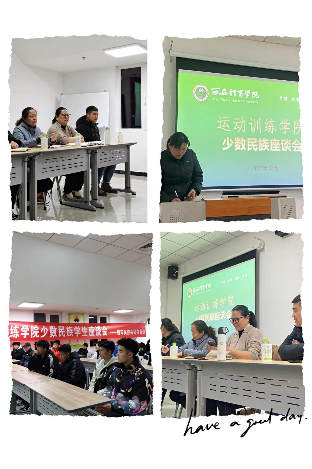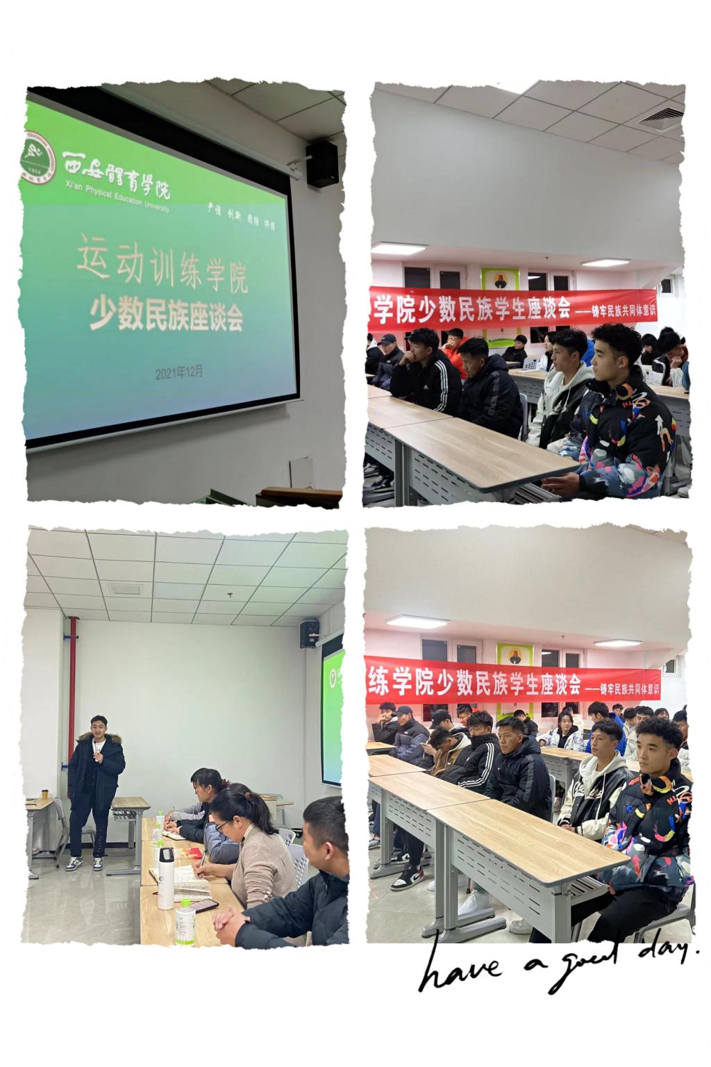 为贯彻落实中央民族工作会议精神,加强对我院学生民族团结进步教育和管理服务,提高少数民族人才培养质量,我院于2021年12月14日晚在鄠邑校区举办了少数民族座谈会学习十九届六中全会共建民族同共体意识。英国365上市公司官网副校长谢英;运动训练学院党委书记王鑫;运动训练学院党委委员王青;各年级辅导员以及全体少数民族学生参加了座谈会
