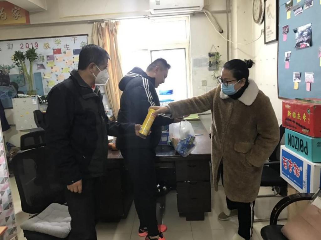 在元旦佳节,院长武洛生、党委书记王鑫亲自看望含光校区一直坚守岗位的王青、张即帅、张文怡、陈德鹏、南海涛等一线辅导员,在送去慰问的时候同时对一线辅导员表示深深感谢,感谢他们确保了在疫情严峻形势下学生的稳定安全,希望他们再接再厉,坚定信心,打赢打好此次疫情攻坚战,一直在鄠邑校区驻守的党委副书记张佩莉也对雷璇、黄环、王涛、李森森送去温暖。