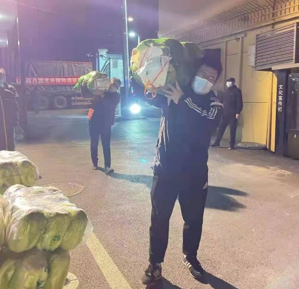 照片十二:重竞技教研室党支部书记马波教授为教职工转运爱心蔬菜