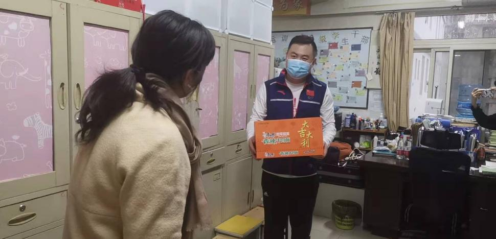 照片十一:副处级辅导员王青转运防疫物资和慰问品