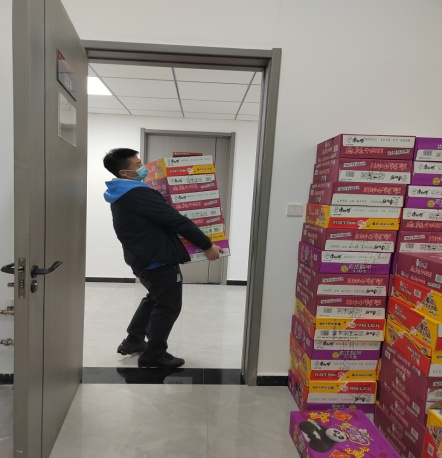 鄠邑校区管委会全面协调校区与属地的防控工作,人手拉不开,刘海国主动请缨,每天驾车往返校区和鄠邑区疫情防控指挥部为保障校区物资运送开具通行证。校外援助物资到了,他又是和工作人员一起装卸物资、清点和发放物资。