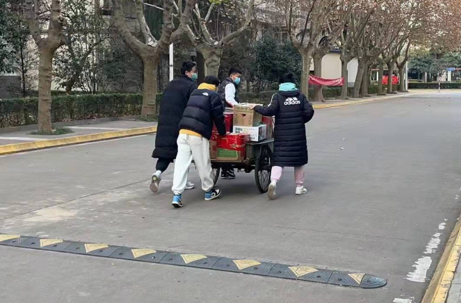 在做好学生工作的同时,王慧颖老师积极向各位焦急等待的家长通报西安的疫情发展情况,以及学校的应对措施、同学们的隔离现状等等,家长们均对学校的相关安排表示理解和赞同。但由于目前疫情隔离防控政策影响,部分物资仍处于短缺的状态,王慧颖老师发动家长们群策群力,在力所能及的范围内帮助学校解决同学们的现实需求。2021年12月28日下午,19级实验班各位家长纷纷捐款,委托马婉婷同学的家长联系了防疫物资和水果,并且在符合学校防疫规定的前提下,将物资运送到学校门口,部分学生志愿者在辅导员王慧颖老师、陈德鹏老师的带领下,对物资进行了签收、整理、归纳,并分发到各位同学的手里,同时还将部分物资带到了坚守在第一线的院领导手里。