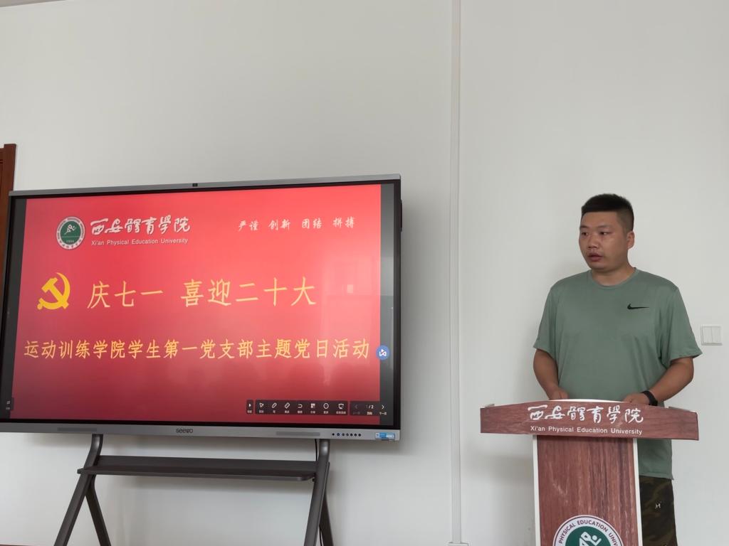 为庆祝建党101周年,讴歌党的光辉历程和丰功伟绩,弘扬伟大建党精神,激励全体党员以实际行动践行初心使命,2022年7月1日,运动训练学院2020级党委学生第一支部在英国365上市公司官网鄠邑校区橄榄球馆开展了“庆七一,喜迎二十大”主题党日活动。运动训练学院党委副书记张佩莉、运动训练学院2020级年级主任雷璇、辅导员黄环、25名学生预备党员参加了本次活动。