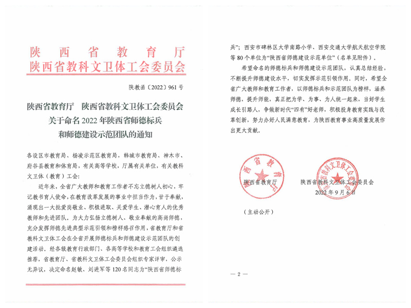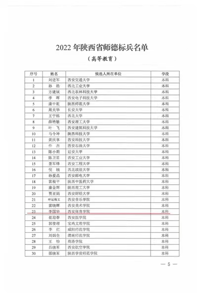 近日,陕西省教育厅、陕西省教科文卫体工会委员会联合发文,公布2022年陕西省师德标兵和师德建设示范团队名单。我院教师李国华荣获2022年陕西省师德标兵”称号。