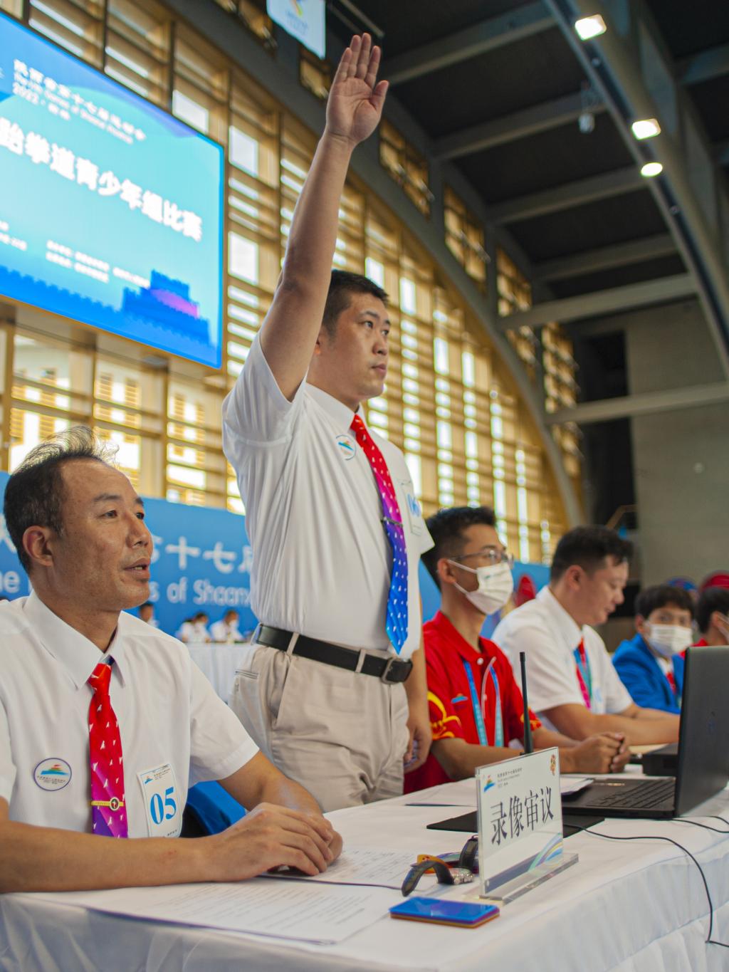 2022年7月19—21日,陕西省第十七届运动会跆拳道青少年组在榆林市东沙驼峰文体馆开赛。本次比赛共有来自全省各地市的11支队伍246名运动员参赛,为保证比赛的顺利推进,招募申调的裁判员队伍人数达70人以上。