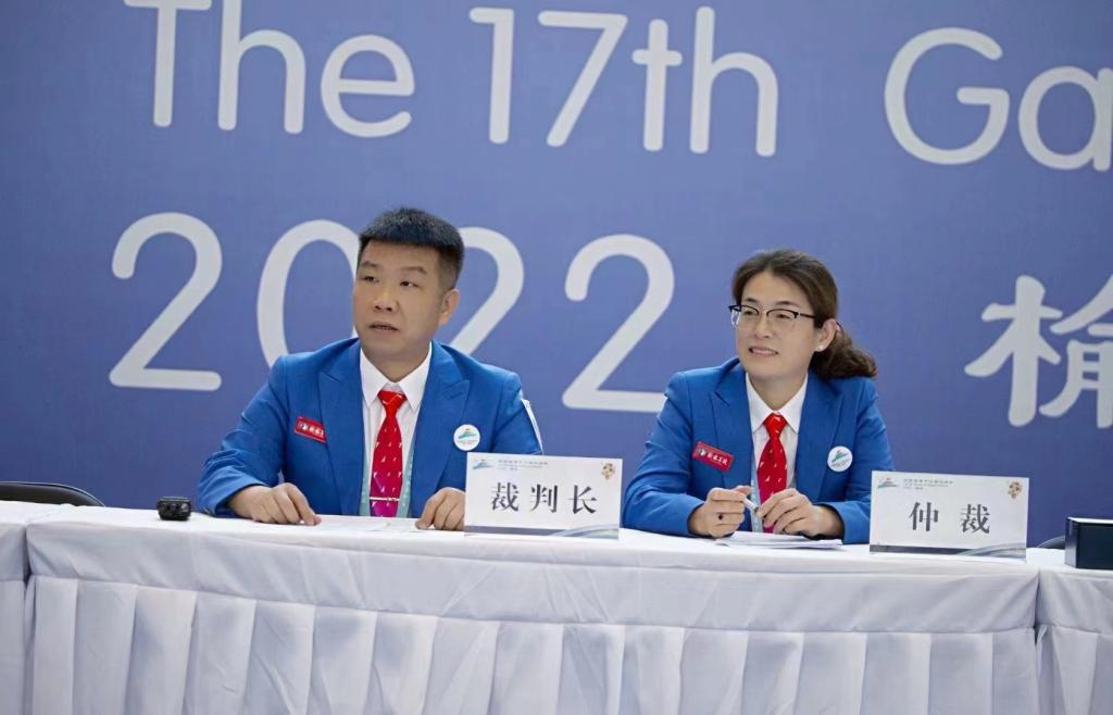 我院重竞技教研室国际级裁判申旭教授担任仲裁,国家级裁判员于善副教授、许波老师、张俊老师分别担任录像审议委员、副裁判长和裁判员工作。通过赛前准备会,大家统一思想和执裁的尺度及标准,每个人严格按照要求,在自己的工作岗位凭借过硬的专业知识和技能,确保赛事公平公正顺利进行,收到大家一致好评。