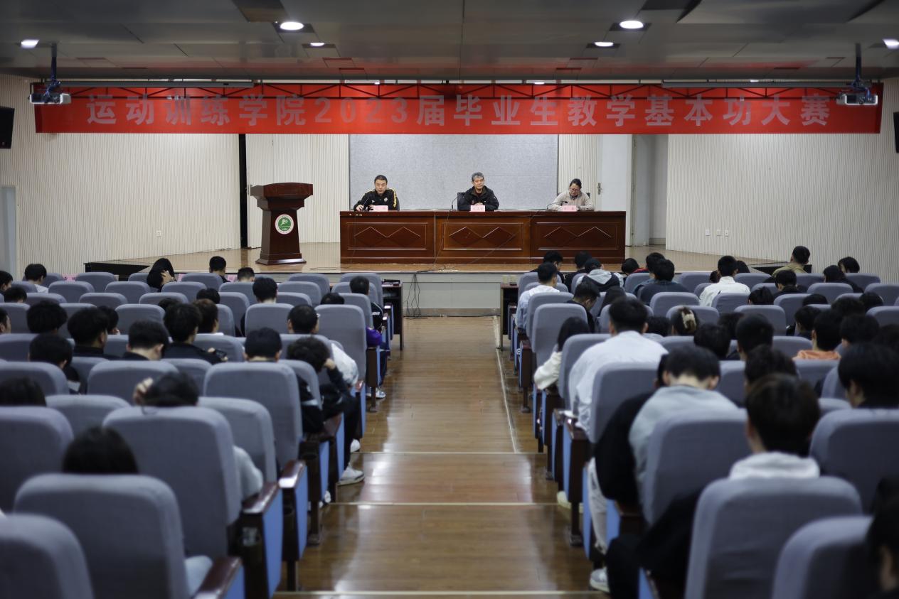 为进一步检验2023届毕业生教育实习效果,提高学生专业素养,促进教育理论与实践的有机结合,提高专业技能和教学技能。运动训练学院于2023年3月22日下午在教学楼一楼报告厅举办2023届毕业生教学基本功大赛。