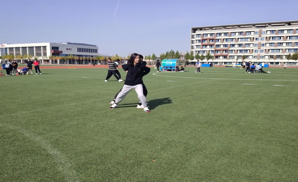 最后进行的项目是两人三足,比赛过程中,现场充满了欢声笑语。同学们在奔跑中互相激励,彼此加油助威,一边观看的同学们也不时发出阵阵欢呼声,为参赛队伍加油打气。在场师生的热情如同一簇绚烂的焰火在比赛场中绽放,通过欢笑将团结协作的精神传递给在场的每一个人。