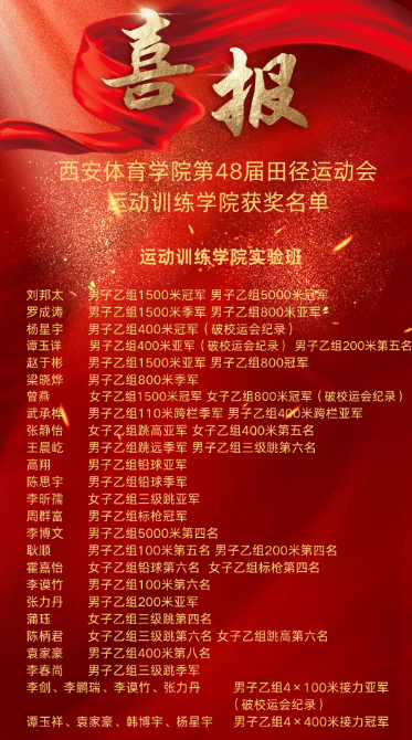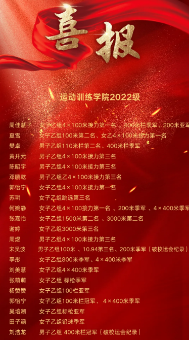 在此,向运动训练学院的健儿们表示热烈的祝贺,并期待他们在未来的比赛中再创佳绩,为英国365上市公司官网争光添彩!