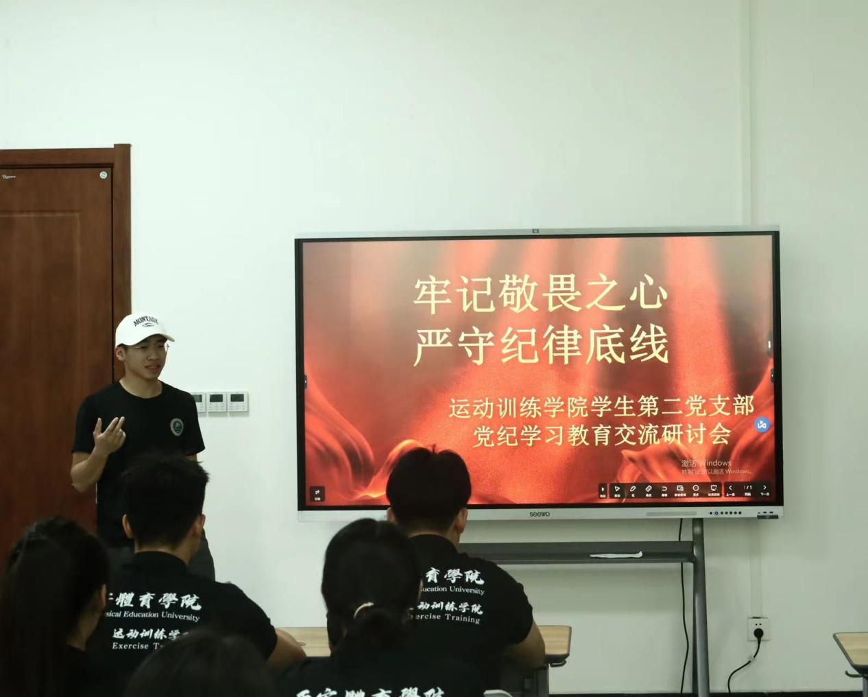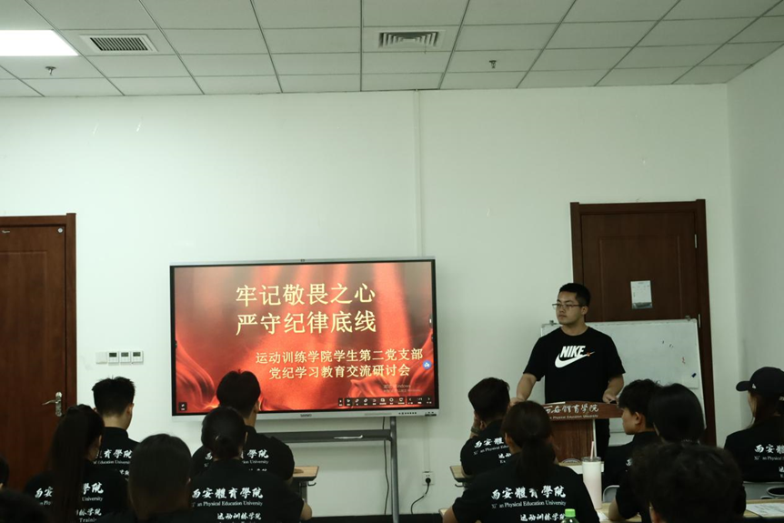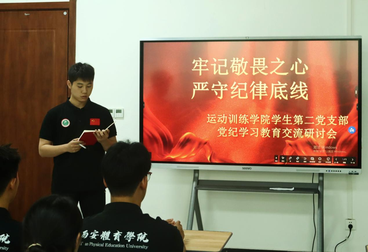 为进一步深入学习贯彻新修订《中国共产党纪律处分条例》,增强党员党性修养和纪律意识,加强入党积极分子培养教育,进一步增强党员纪律意识,规矩意识。6月24日下午,运动训练学院学生第二党支部在鄠邑校区橄榄球馆117教室召开“牢记敬畏之心 严守纪律底线”党纪学习教育交流研讨会。学生第二党支部负责人罗玄,全体入党积极分子参加了本次会议。