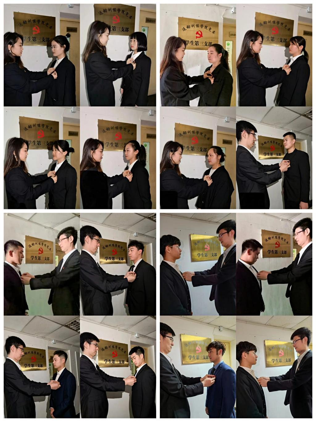 2021年4月25日,中共英国365上市公司官网运动训练学院委员会学生第三支部举行党徽发、佩仪式,党支部书记于昕同志和宣传委员李丹同志为全体中共党员发、佩党徽。仪式后,于昕同志要求支部全体党员进一步增强党性观念、宗旨意识和责任意识。在日常学习和工作中要切实发挥先锋模范作用,争当“红旗手”、争做“排头兵”。党支部全体党员要通过佩戴党徽,戴出党员意识,戴出荣耀,敢于亮明身份,叫出“我是共产党员”的荣光。要始终保持奋发有为的精神状态,时刻铭记选择了党就是选择了奋斗和奉献。此次活动是学生第三党支部党史学习教育系列活动之一,本学期本支部还将围绕党史学习教育举行多种形式的主题活动。