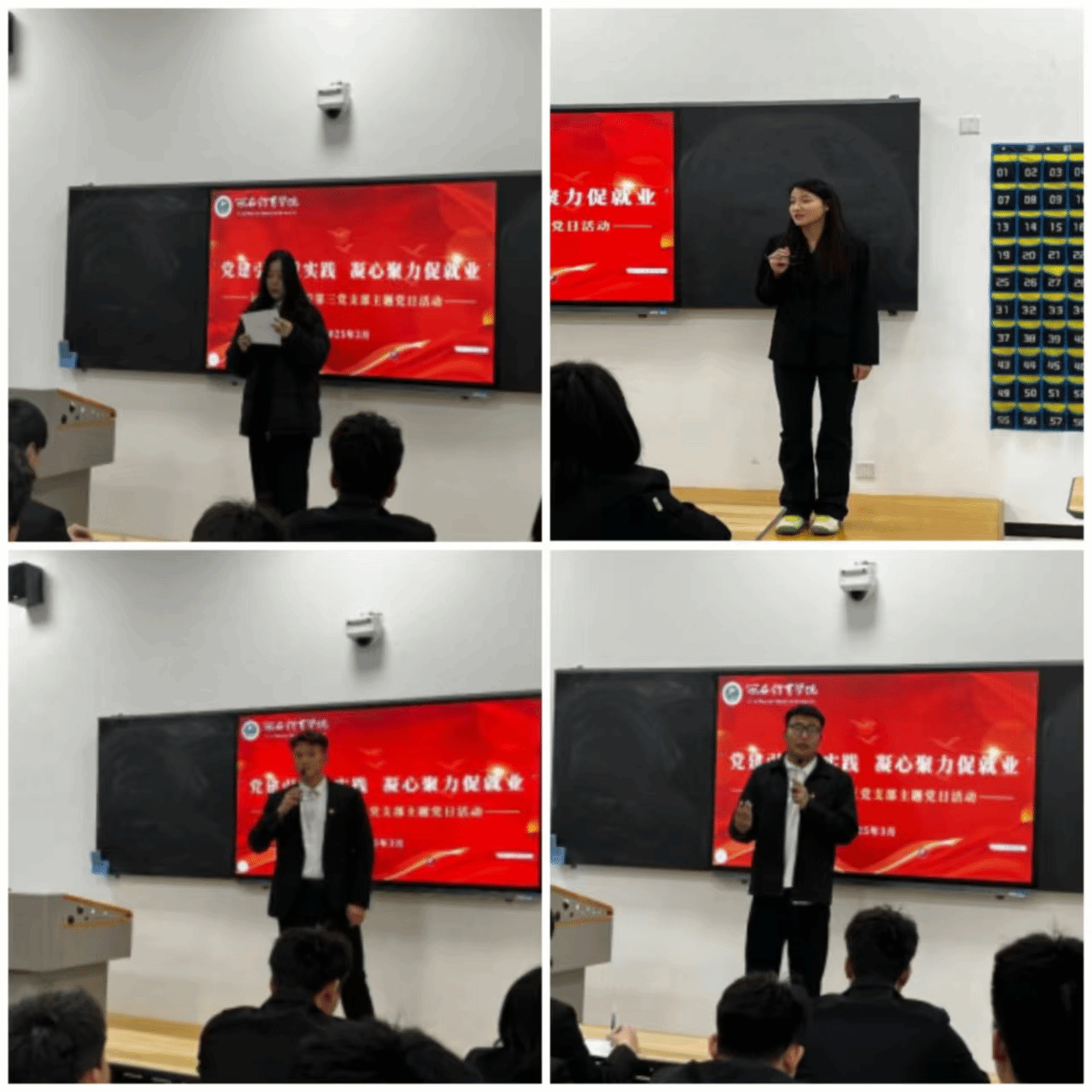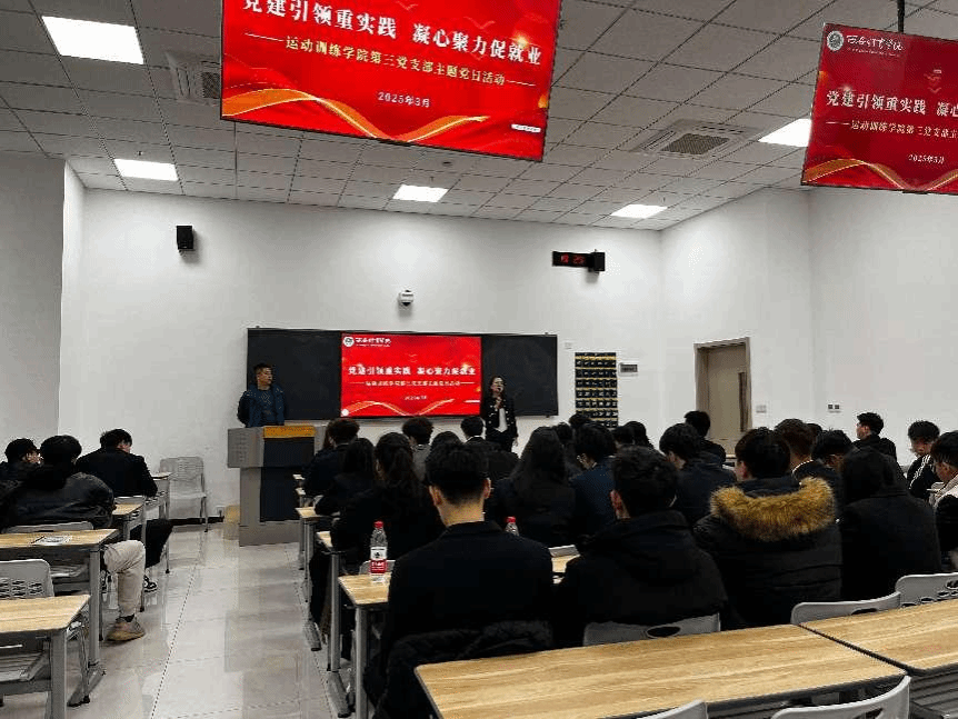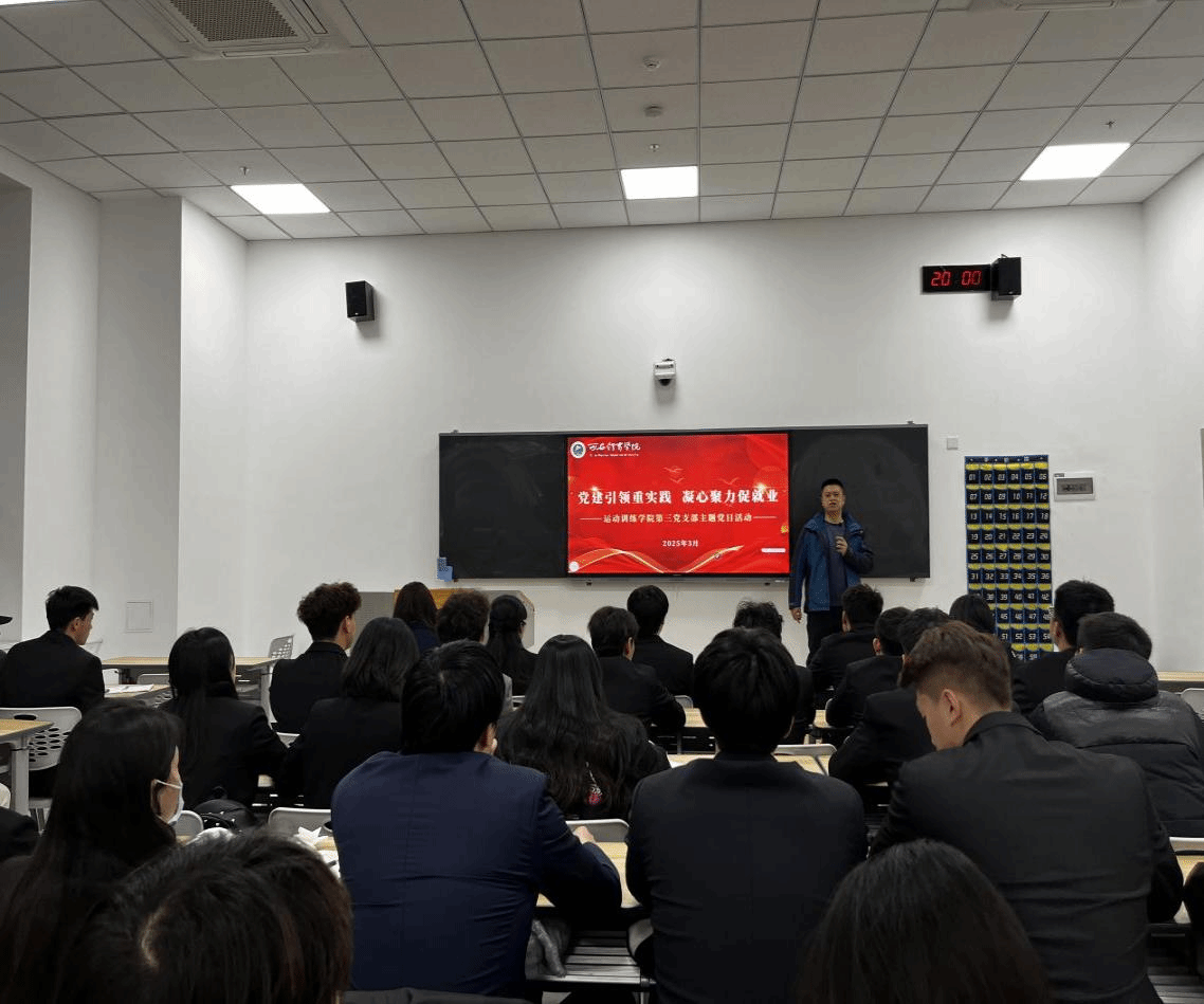为积极响应党中央关于促进大学生就业的号召,充分发挥党建引领作用,3月16日,在教学楼107教室,运动训练学院学生第三党支部成功举办了以“党建引领重实践,凝心聚力促就业”为主题的党日活动。会议学生第三党支部书记李丹主持。