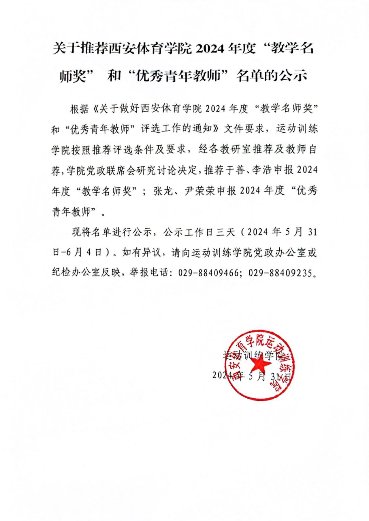 关于推荐英国365上市公司官网2024年度“教学名师奖”和“优秀青年教师”名单的公示