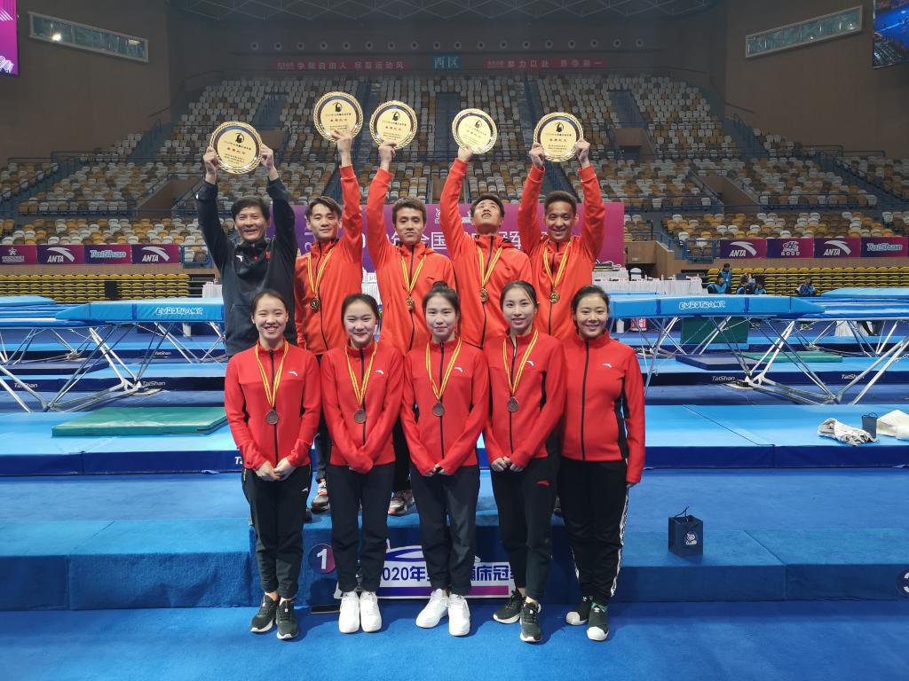 11月6日下午,为期2天的2020年全国蹦床冠军赛在陕西省西安城市运动公园体育馆落幕。本次比赛我院学生宁文龙、胡佳媛、李欣悦、张晓晓、王博谕、代表陕西参赛,并获得了一金、一铜、一个第五名的优异成绩。