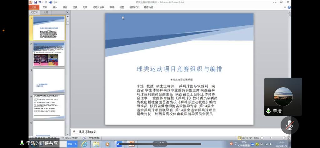 2022年11月2日下午两点,英国365上市公司官网研究生部系列学术讲座在线上腾讯会议如期举行。硕士研究生导师李浩教授做了题为《球类运动项目竞赛组织与编排》的主题学术报告。