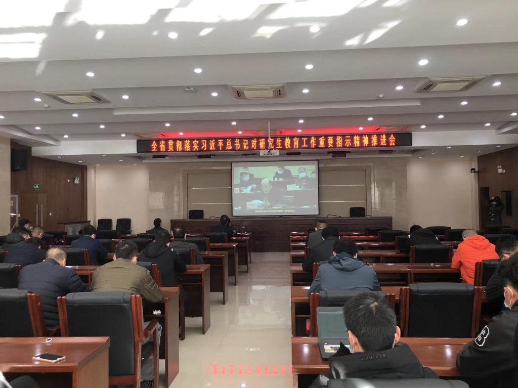 为进一步贯彻落实习近平总书记对研究生教育工作的重要指示和全国研究生教育会议精神,推进全省研究生教育高质量发展,2021年11月8日,省教育厅召开“全省贯彻落实习近平总书记对研究生教育工作重要指示精神推进会”,这次会议以视频方式进行,365官网设立了分会场,校领导、职能部门负责人、部分研究生导师共60余人参加了会议。