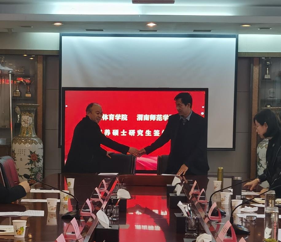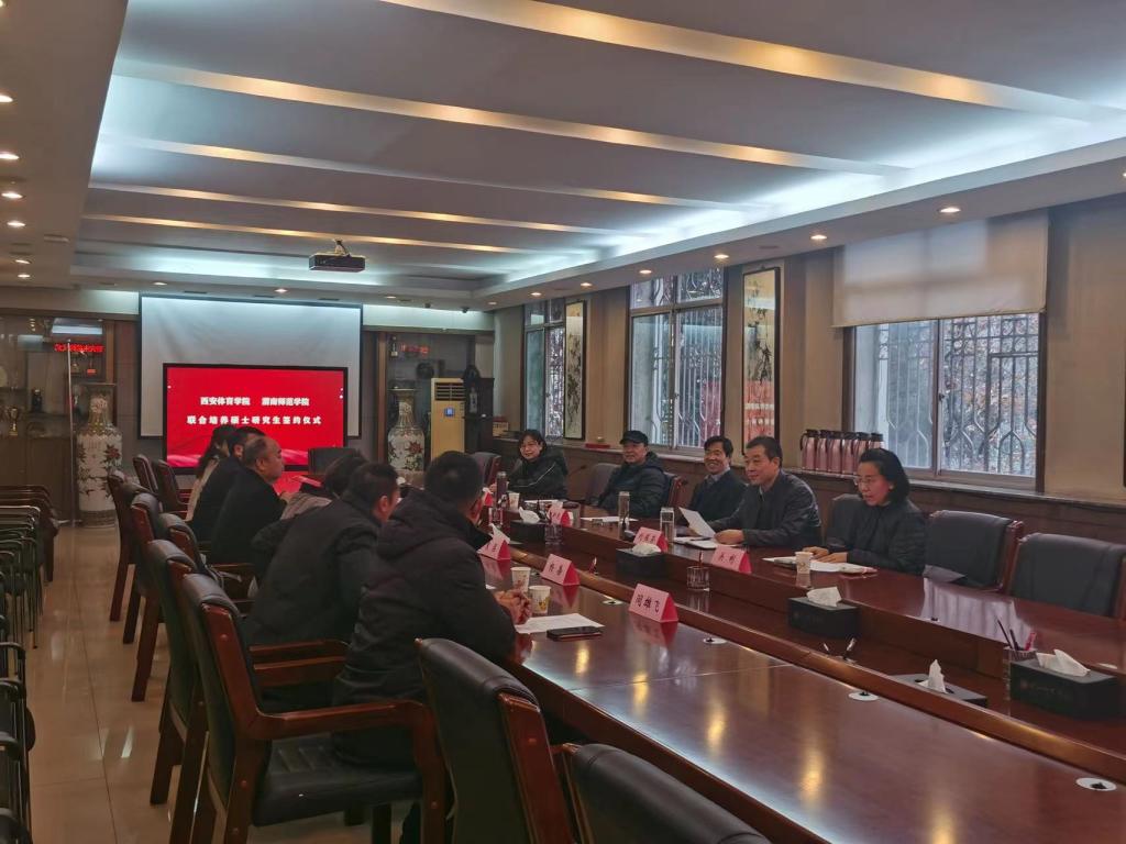 刘新民副校长和渭南师范学院副校长卢爱刚共同签署了联合培养硕士研究生协议书;刘新民副校长代表学校为联合培养外聘导师颁发了聘书。