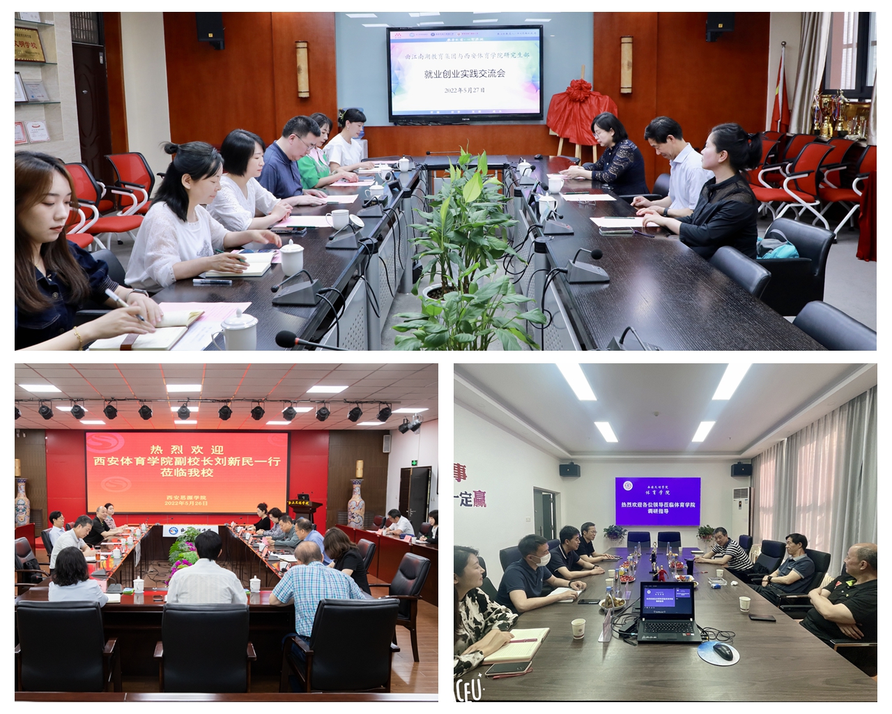 本网讯 为进一步了解用人单位对毕业生规模需求和专业能力素质的要求,促进硕士毕业生高质量就业,4月25日-5月27日,副校长刘新民带领研究生部领导班子成员、辅导员一行4人前往先后前往红会医院、西安培华学院、西安文理学院、西安思源学院、曲江南湖教育集团就研究生联合培养暨校领导访企拓岗促就业工作进行了座谈。