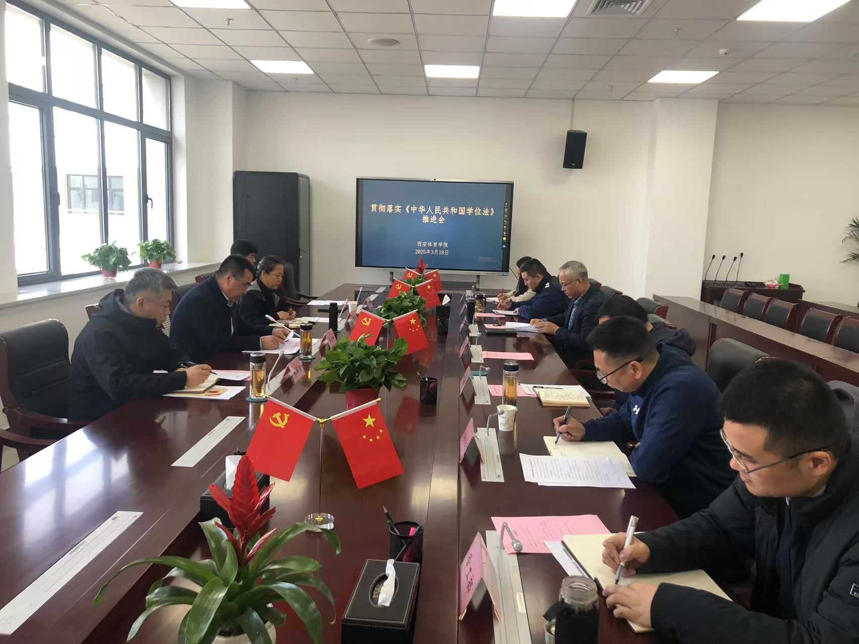 2025 年 3 月 18 日,英国365上市公司官网在鄠邑校区教学综合楼 440 召开了贯彻落实《中华人民共和国学位法》工作推进会。校领导李富生、谢英、张葆欣、毕德鹏等出席了此次会议,各相关部门负责人齐聚一堂,共同探讨和推动学校学位工作的发展。