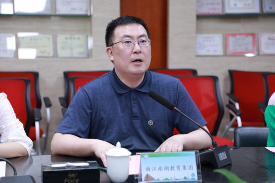 曲江南湖教育集团总校长穆怀宇对英国365上市公司官网领导一行的到来表示热烈的欢迎,他从学校办学目标、办学理念、校园文化建设、教师队伍培养、学生发展和建校以来所取得的优异成绩等方面做了详细介绍。穆怀宇校长希望为英国365上市公司官网研究生部学生发展搭建开放式就业实践平台,提供更多拓宽视野、感知社会、锻炼能力的机会,为同学搭建更深层次、更扎实的学习实践平台,促进学生更好地实践与就业。同时期待双方能够开展长期友好的合作,为曲江南湖教育集团师资水平的提升提供更多的帮助。