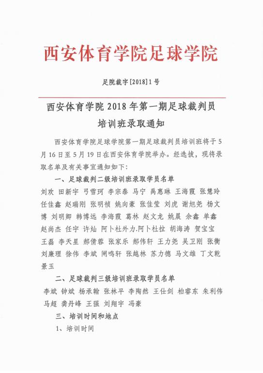 英国365上市公司官网2018年第一期足球裁判员培训班录取通知