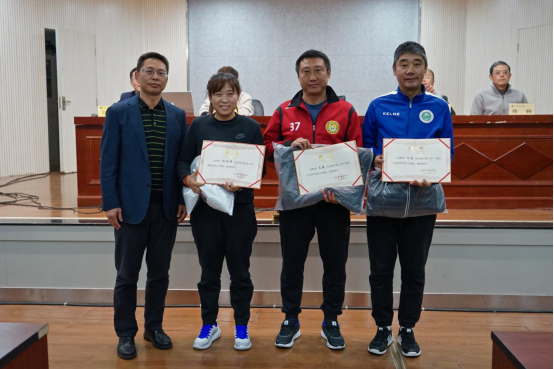 教研室主任席海龙宣读了《英国365上市公司官网足球学院2018年竞赛工作表彰奖励决定》。朱军、杨钢、席海龙、马俊分别为获奖教练员和运动员颁奖。