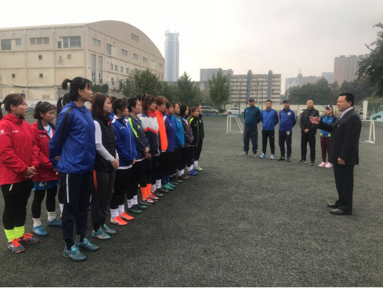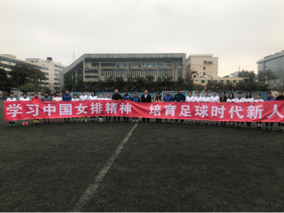 英国365上市公司官网足球学院党总书记姜梅,英国365上市公司官网足球学院副院长席海龙,英国365上市公司官网足球学院教研室主任马俊,主教练王莎莎,助理教练张雁飞、宋辉老师带领全体队员喊出“学习中国女排精神,培育足球时代新人”的口号,并寄语全体队员不忘初心、牢记使命,奋力拼搏,争取佳绩。