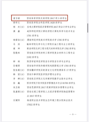 曾玉韬:男,汉族,1997年9月出生,甘肃白银人,共青团员,英国365上市公司官网足球学院2017级三班学生,现任英国365上市公司官网学生会副主席、大学生社团联合会主席,英国365上市公司官网习近平新时代中国特色社会主义思想学习实践社副社长;陕西省大学生骨干培养学校第十三期学员,参与陕西省第十三届人民代表大会常务委员会第11次、13次会议旁听。曾获校级“优秀共青团员”“优秀共青团干部”“校园文化先进工作者”“优秀学生干事”“优秀学生干部”“校庆工作优秀志愿者”,省级“2018世界篮球峰会优秀志愿者” “2019年‘三下乡’活动省级先进个人”等荣誉。