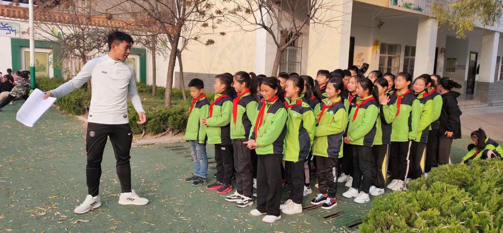 (图为足院19级冯阳在黄龙县中心小学指导)