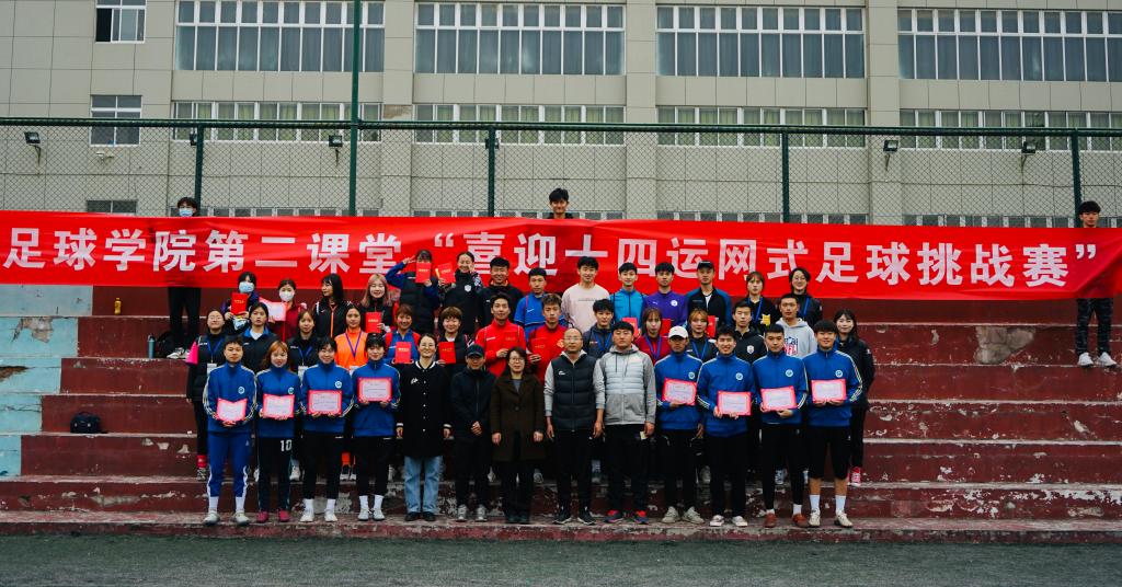 为响应十四运会“全民全运 同心同行”的号召,3月31日中午,足球学院举办了一场网式足球挑战赛。此次比赛共有12支队伍参赛,经过激烈角逐,分别产生了女生组前三名和男生组前三名。