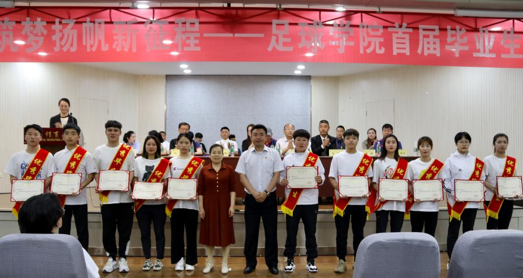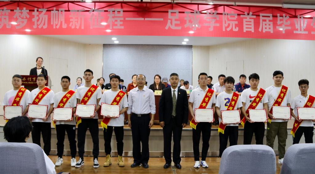 院长席海龙教授代表足球学院党政向受到表彰的优秀毕业生表示热烈的祝贺,向学院全体任课教师、辅导员、教学保障人员致以崇高的敬意。他希望所有毕业生要常怀感恩之心,感谢党和国家的政策、感谢父母的关心、感谢学校的培养;要常怀敬畏之心,拥有高尚品德和良好职业素养的同时,对我们的专业和行业长存敬畏之心;要常怀奋斗之心,在工作中增长才干、练就本领,做校园足球发展的奋进者、开拓者、奉献者。