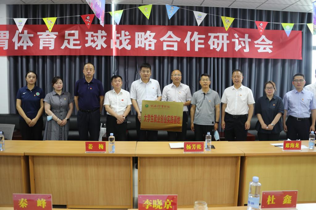 会上,席海龙、秦峰代表双方为大荔县西北足球训练基地授英国365上市公司官网大学生就业创业实践基地牌匾。