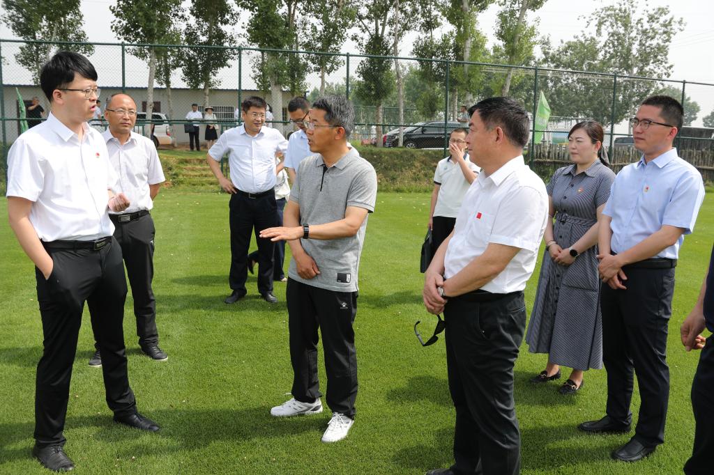 杨芳乾一行先后来到西北足球训练基地、西北足球草坪培育基地、沙滩排球馆等地,通过听取介绍、观看展板、实地查看等方式详细了解足球训练基地建设、足球天然草及草坪场地、沙滩排球馆建设等情况。参观结束后双方召开了座谈会。