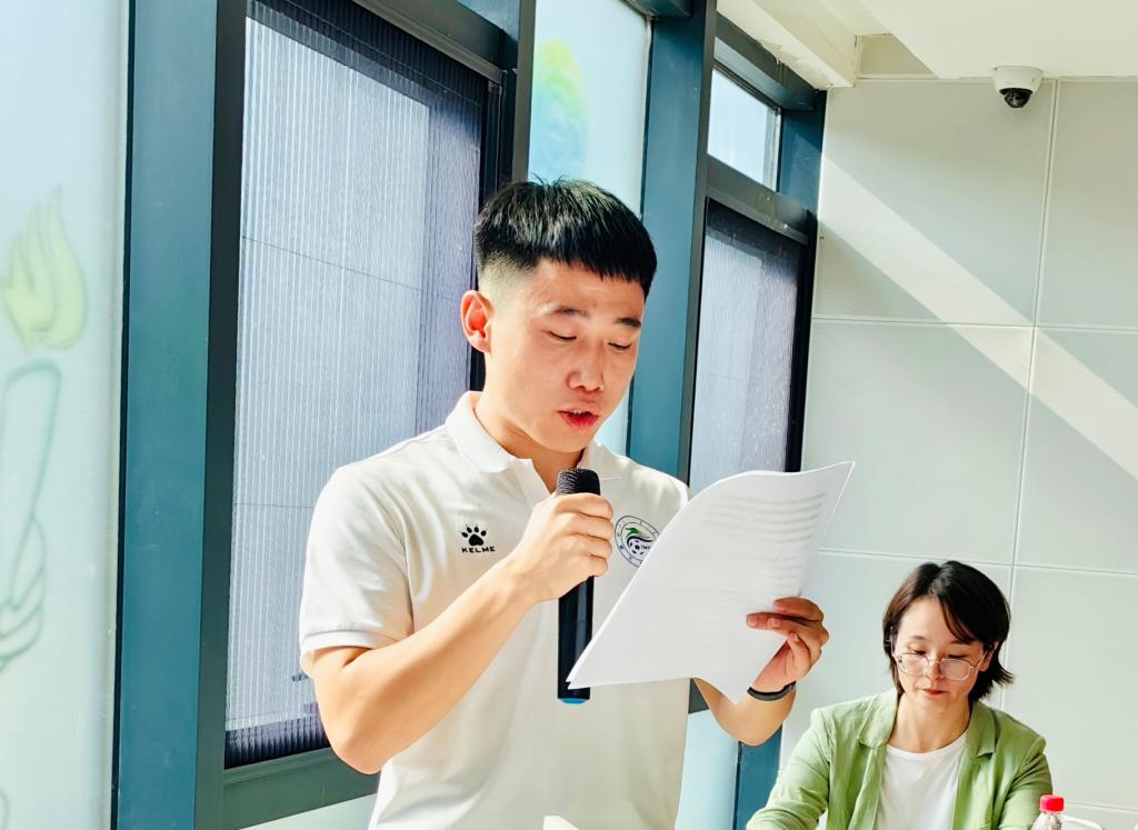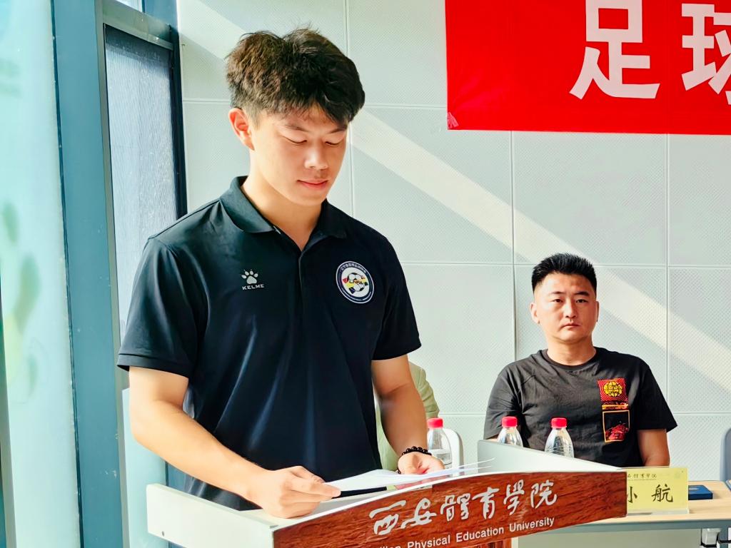院长席海龙借用西安交通大学校长王树国在西安交大2023级本科生开学典礼上的讲话中提到的大学生活要完成“夯实知识基础、提升创新能力、培养坚韧不拔的毅力”三项任务,同我院人才培养目标相结合进行解读,鼓励新生坚持足球梦想,把家国情怀融入到不懈奋斗之中。