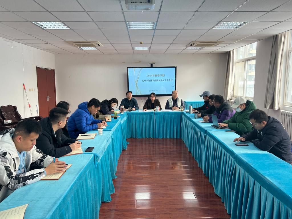 2月24日上午,正值元宵佳节,我院在2号行政楼406召开了2024年春季学期开学前教学准备工作会议,足球学院全体教职工参会,会议由党总支书记姜梅主持。