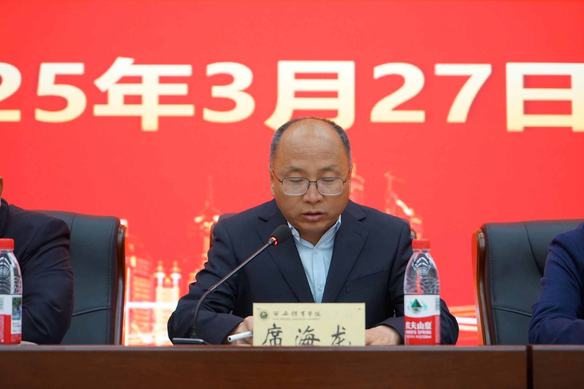 会议伊始,足球学院院长席海龙作学院2024年度工作总结,表示过去一年,足球学院在学风建设、竞赛训练等方面取得了显著成绩,肯定了获奖学生在专业学习与训练实践中的突出表现,强调“学训融合”育人理念,未来的足球是体能、技术、智慧的综合,希望大家奋起直追,争做新时代追梦人。