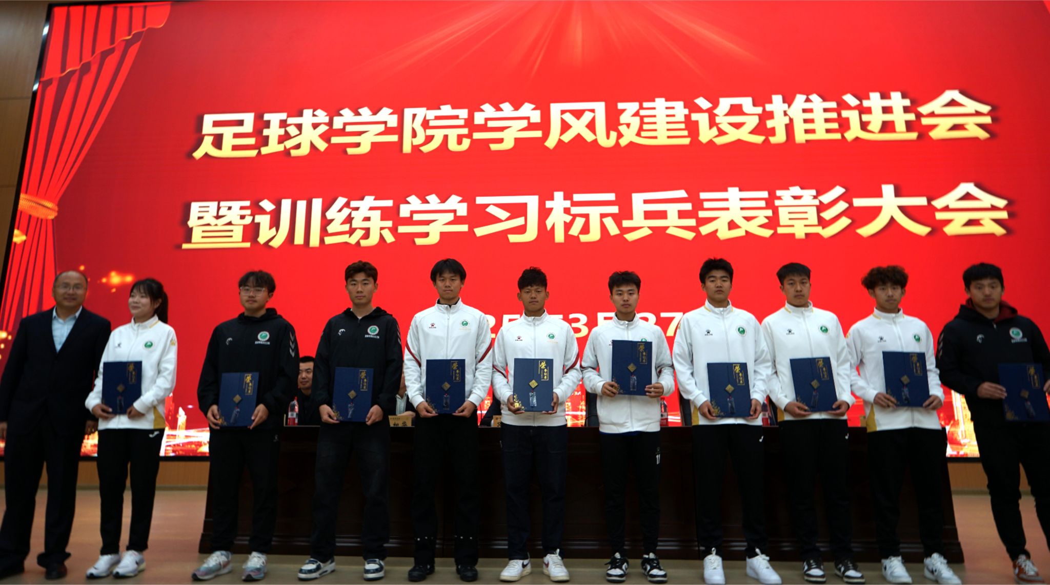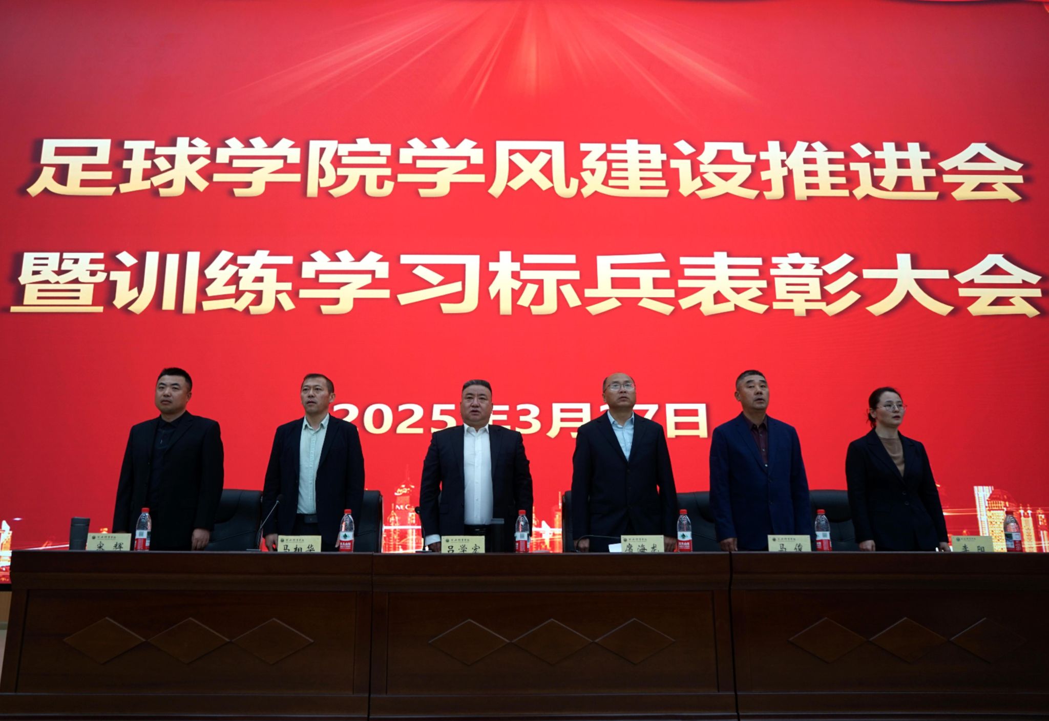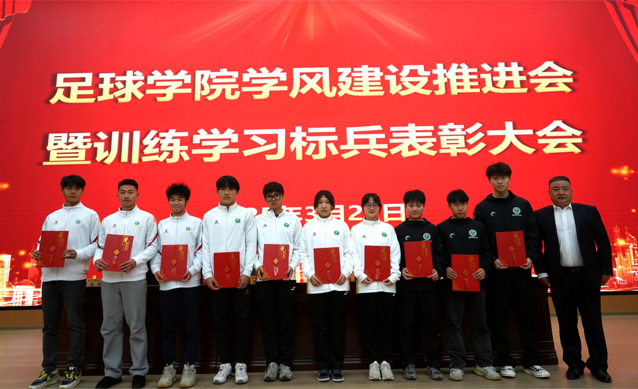 为深入贯彻英国365上市公司官网开展学风建设的相关要求,总结足球学院在学风建设、竞赛训练等方面的成效,安排部署本年度学风工作开展,英国365上市公司官网足球学院于2025年3月27日晚19:00在鄠邑校区教学综合楼三楼报告厅隆重召开足球学院学风建设推进会暨训练学习标兵表彰大会。足球学院党政领导、校男女队主教练、全体辅导员出席大会,2022级、2023级、2024级全体本科生参加大会。会议由足球学院副院长马相华主持。
