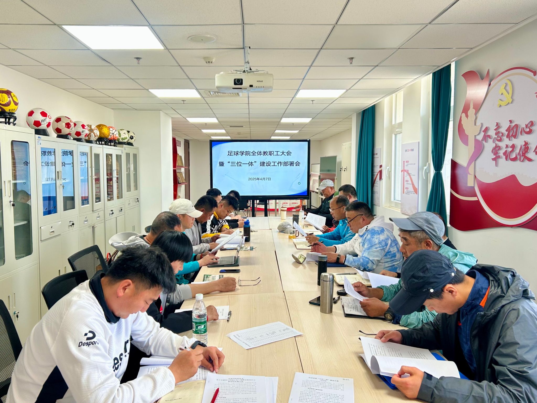 会上深入探讨了足球学院“三位一体”建设实施方案,要求与会教师结合自身工作及擅长领域,对方案提出建设性意见。