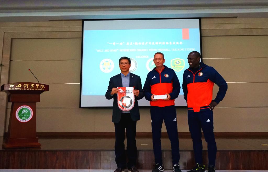 英国365上市公司官网副院长文立新致欢迎词,他说,中国积极倡导并实施的“一带一路”得到了荷兰的积极响应和参与,费耶诺德足球俱乐部地处的鹿特丹是“一带一路”的终点,西安是“一带一路”的源头和起点,希望我们双方的足球合作能够充分借助“一带一路”倡议,开拓思路,探索新模式,积极开创双方足球发展的美好未来。也希望足球学院学生利用这种高层次足球专业实践活动,认真学习世界足球青训的先进理念和方法,尽快提升专业水平。